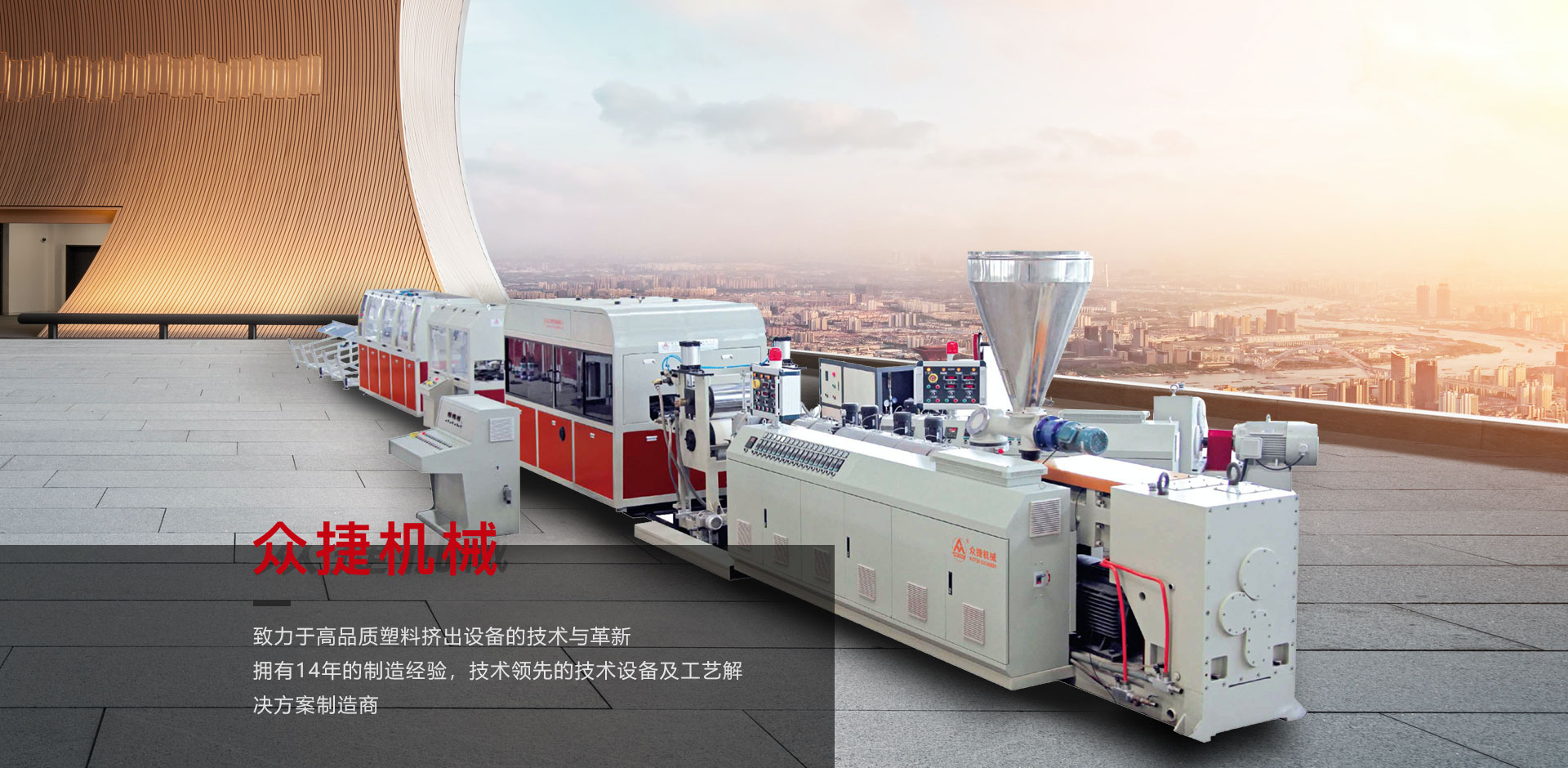 塑料擠出機制造的技術和市場領導者,眾捷機械為裝飾、異形材料、木塑、發泡板、PVC管材提供完美的解決方案。類塑料基礎設備領先水平,在創新與發展中已經有14年歷史。